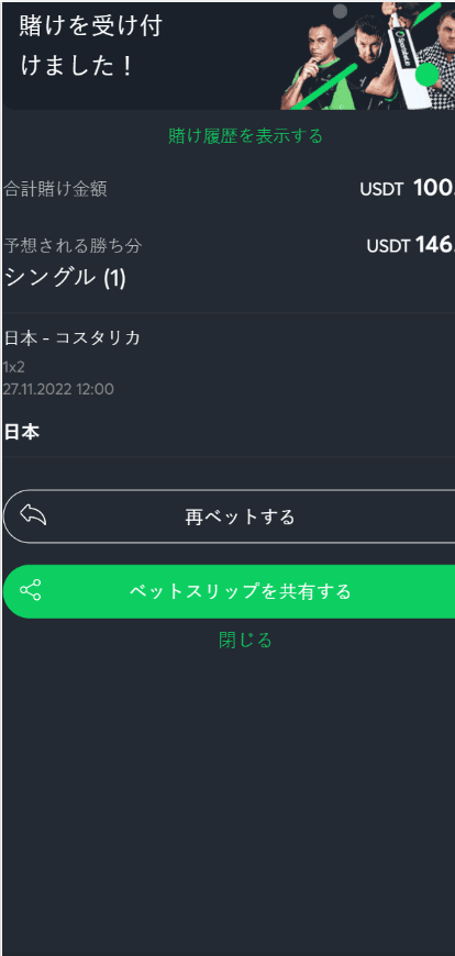 ワールドカップ日本対コスタリカ戦にベットしてみる