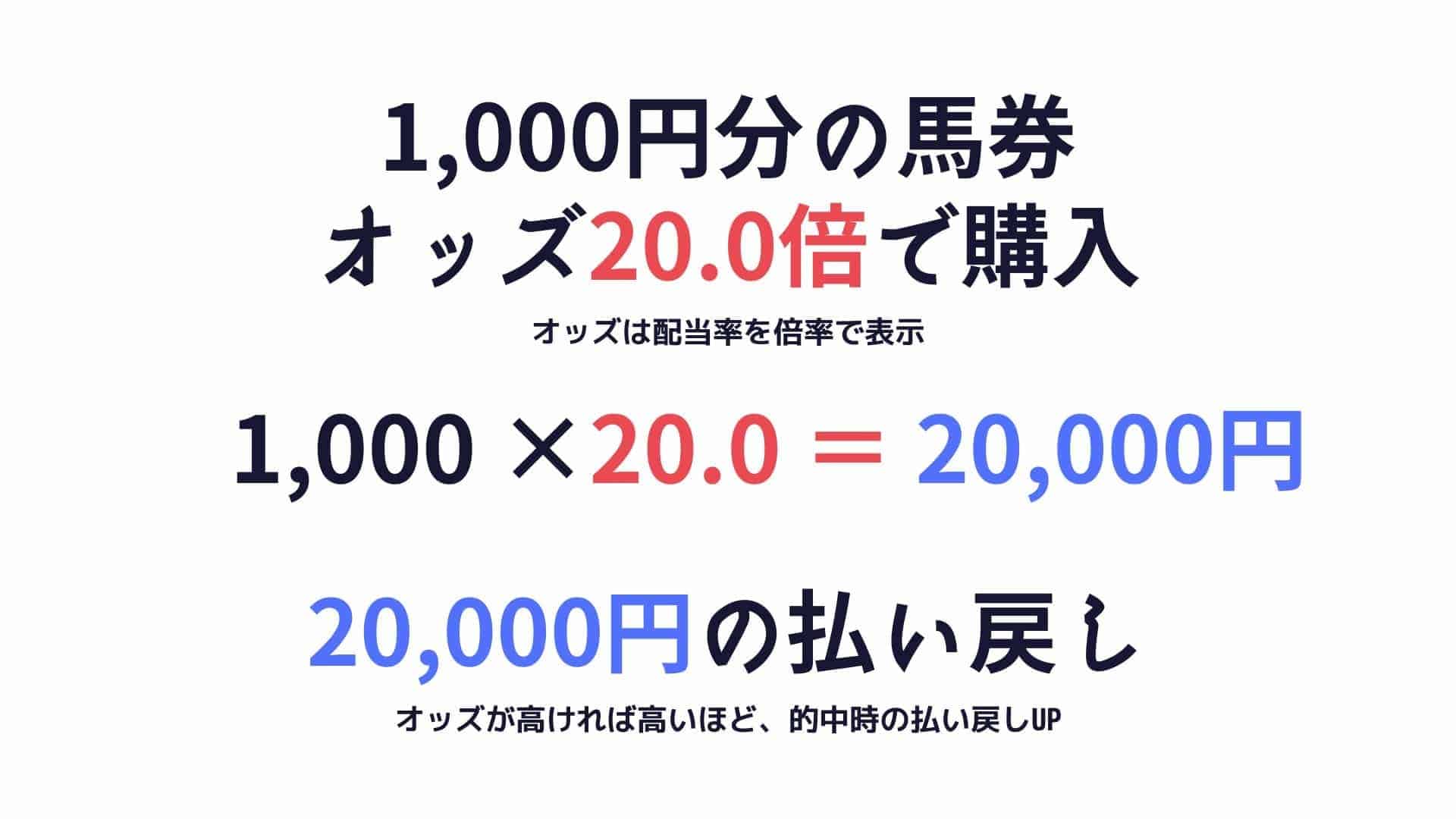 オッズ(配当率)は的中時にどれほどの払戻金が支払れるかを倍率で表しています。