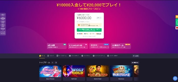 初回入金 100%最大¥10,000+フリースピン180回
