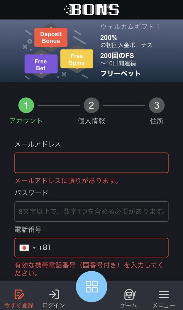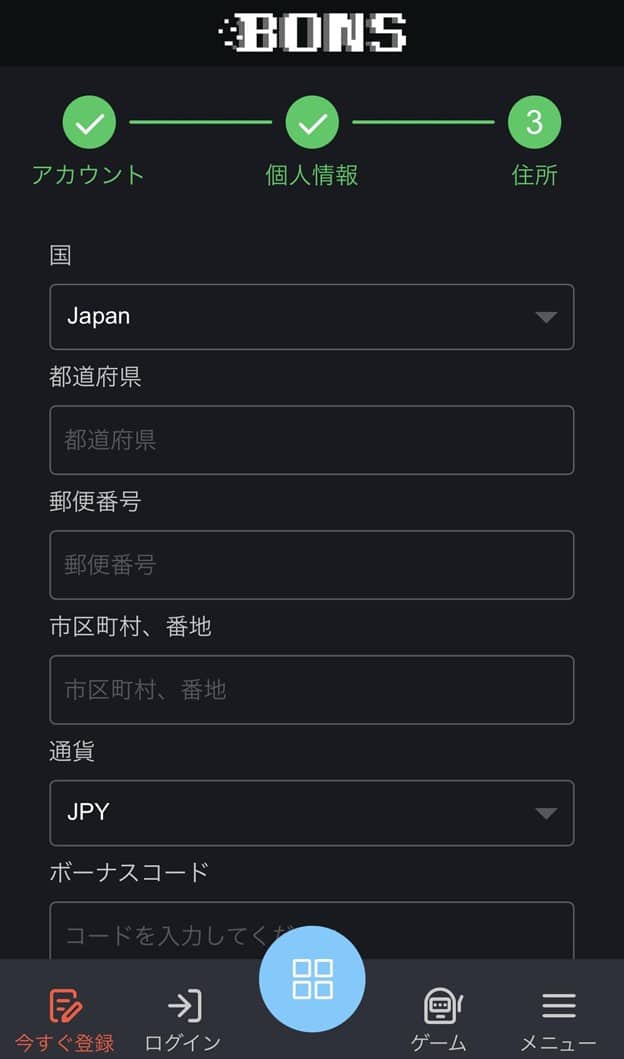 早速登録してボンズカジノで遊んでみましょう。登録はとても簡単です。手順通りに進めていくだけであっという間に終わります。