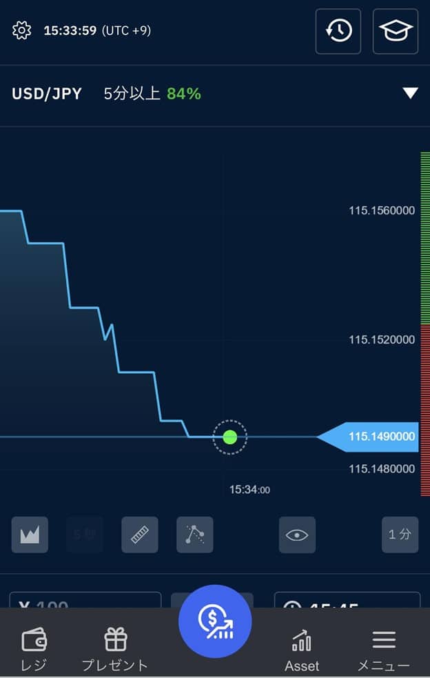 配当はそれぞれ40%から80%ほどに設定され、当たればその配当倍率を賭けた配当金が得られます。実際の相場と連動して値が動いているので、バイナリーオプションそのものを楽しむことができます。