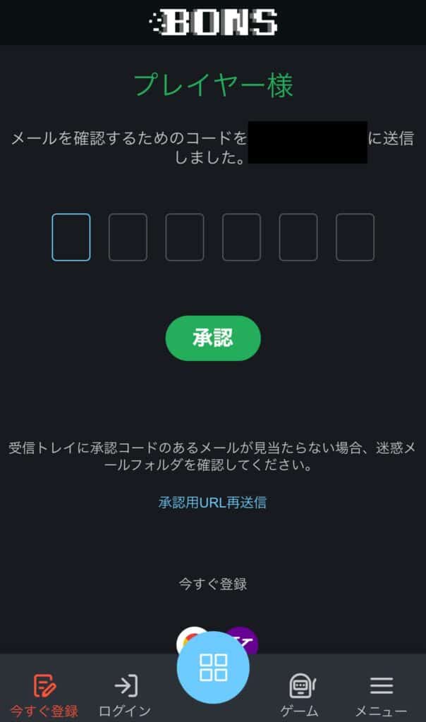 登録したメールアドレス宛に認証コードが届くので、その数字を入力すれば登録完了です。