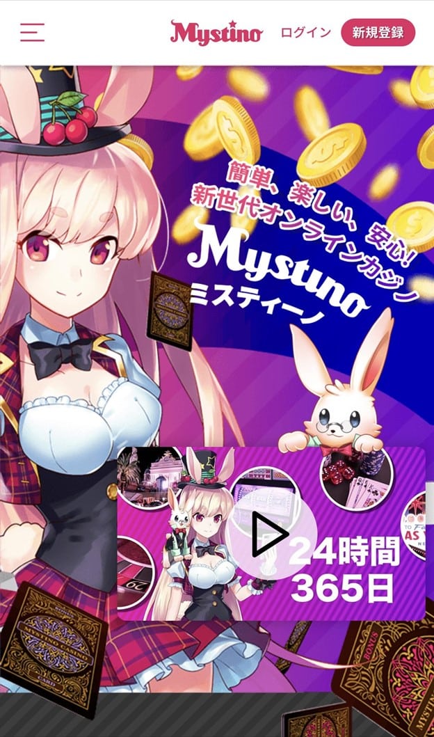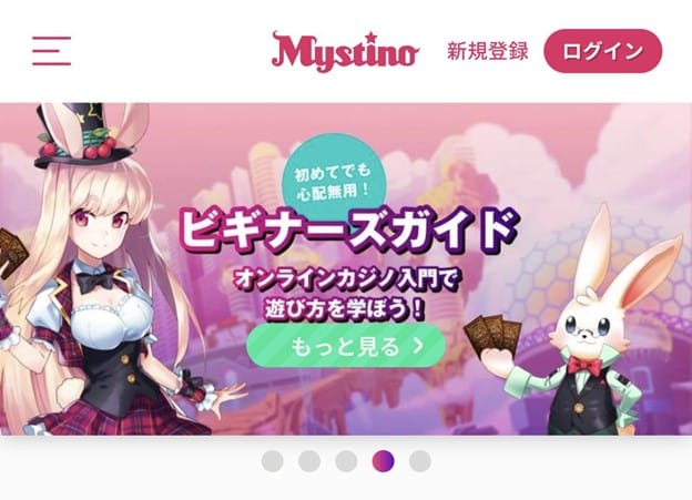 2020年にサービスを開始したミスティーノは日本人にも馴染めるサイトデザインとユーザー向け発信が多いことが特徴です。ミスティーノのキャラクター「ミスティ」も公式サイトから飛び出してVtuberデビューしています。また公式ブログでは、オンラインカジノの初心者向けにカジノゲームに勝つためのポイントなどを配信しています。