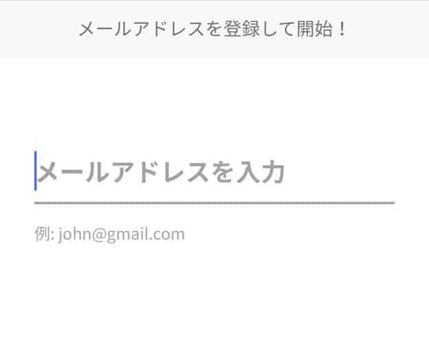 登録画面が開くので、手順どおりに進みます。まずはメールアドレスの入力をします。