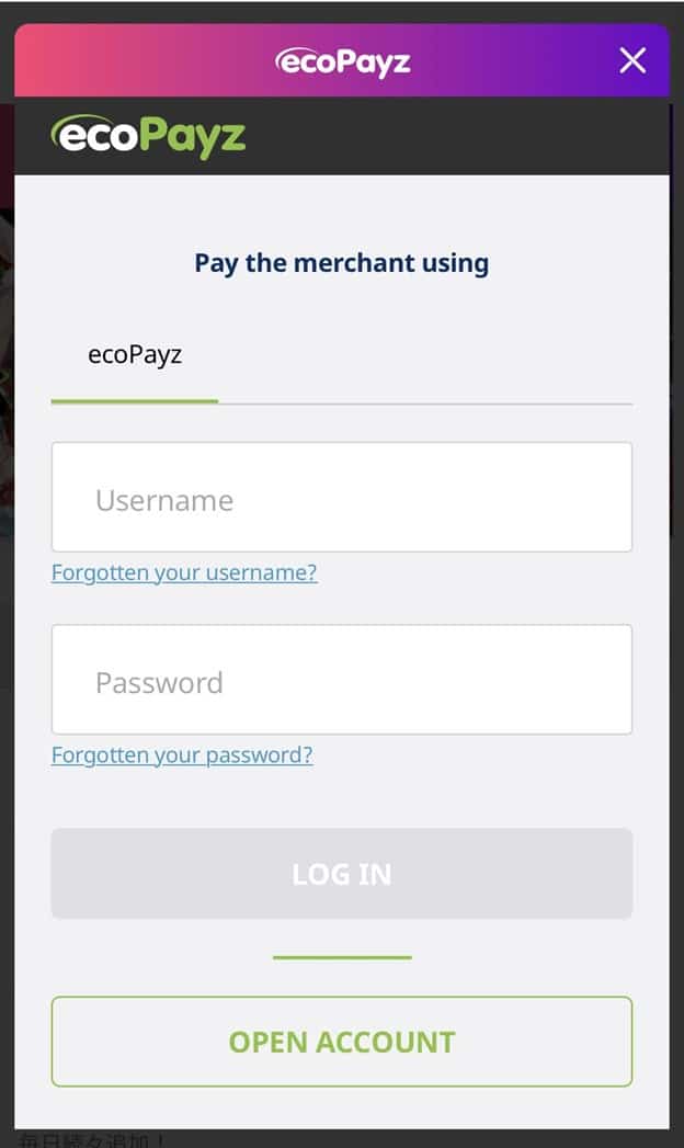 あるいは、エコペイズを選んだら入金額を入力する画面が開き、次に進むとエコペイズにログインする画面に移ります。