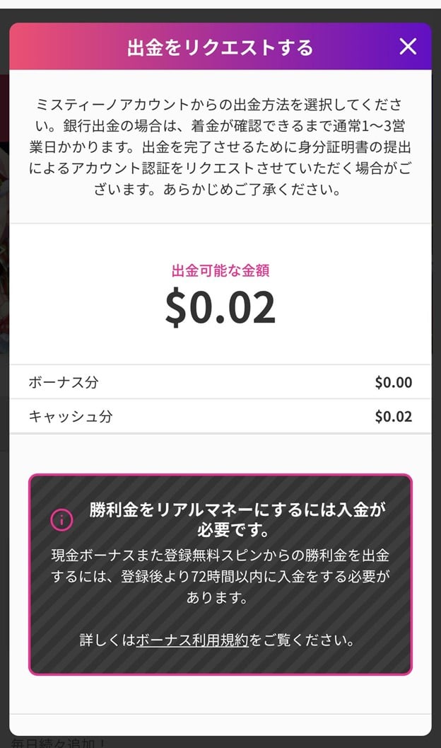 【ミスティーノ】出金方法