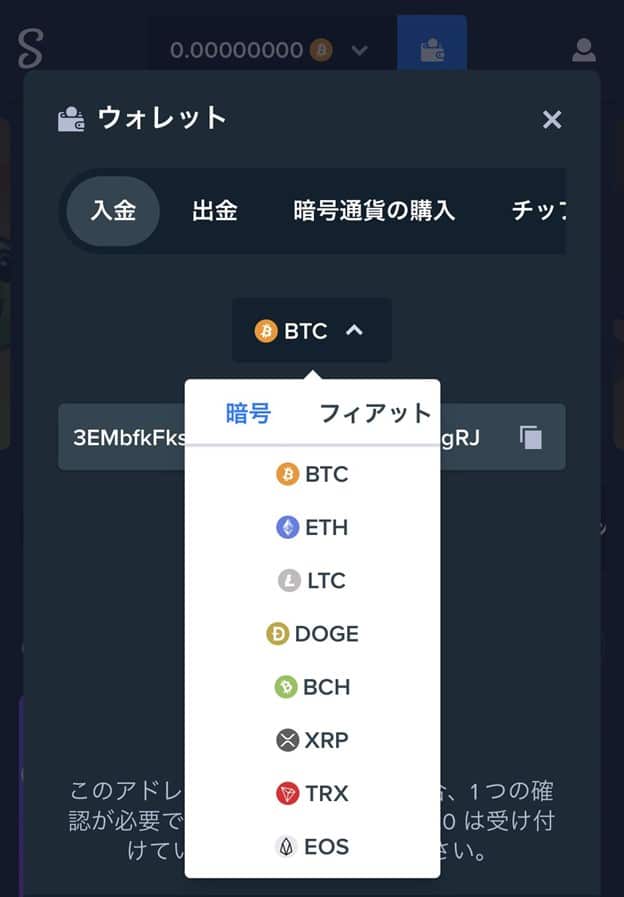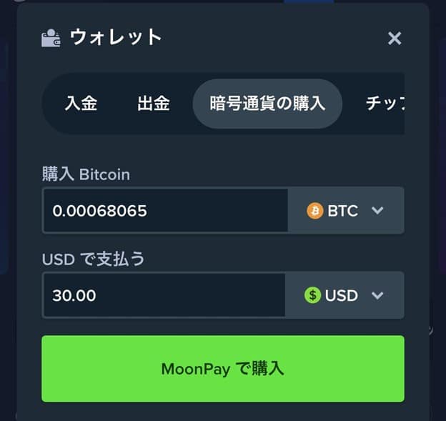 ステークカジノはアカウントのウォレット内にて仮想通貨を購入することができます。仮想通貨を持っていない人も、取引所のアカウントを開設することなく、ステークカジノのみで仮想通貨を保有できるということです。