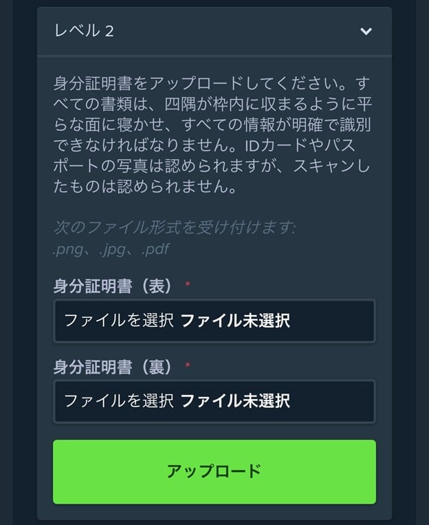レベル2で次のような写真付きの身分証明書をアップロードします。