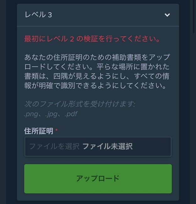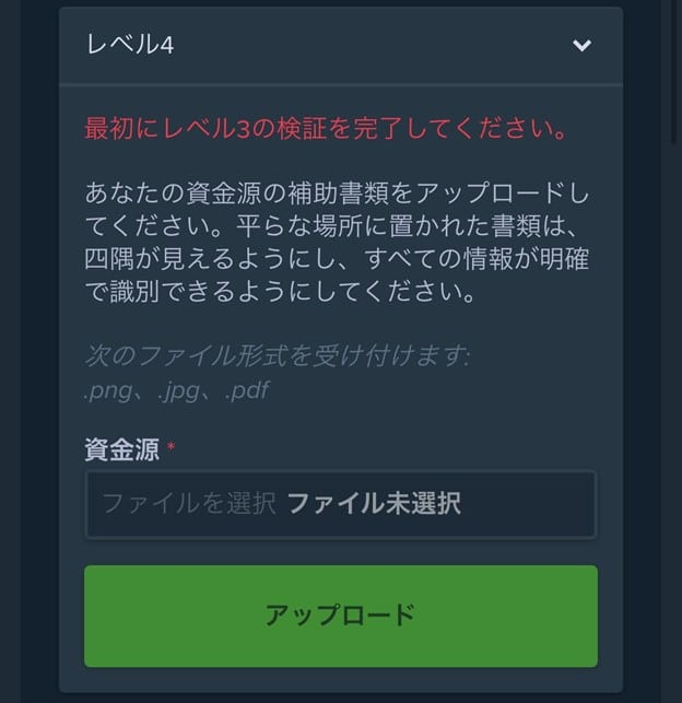 最後にレベル4で収入を証明できる書類をアップロードします。