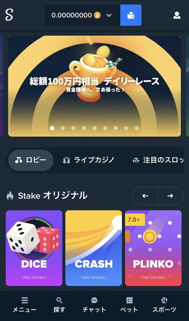ステークカジノはまだ完全に日本語対応してはいませんが、そのサービス内容はかなり充実していることがわかります。プロモーションが豊富に用意されているので、誰でも存分に楽しむことができることでしょう。