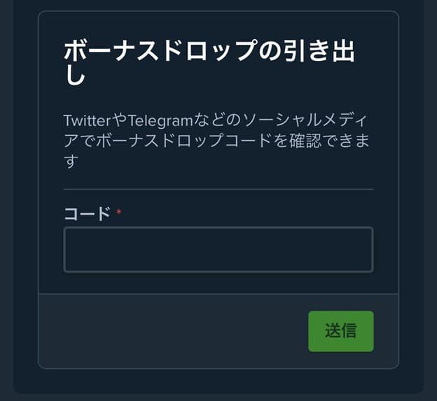 不定期で発行されるドロップボーナスはTwitterにて発表されます。ボーナスコードが記載されているので、アカウント内の「ドロップボーナスの引き出し」にコードをコピペして送信すればボーナスを受け取れます。