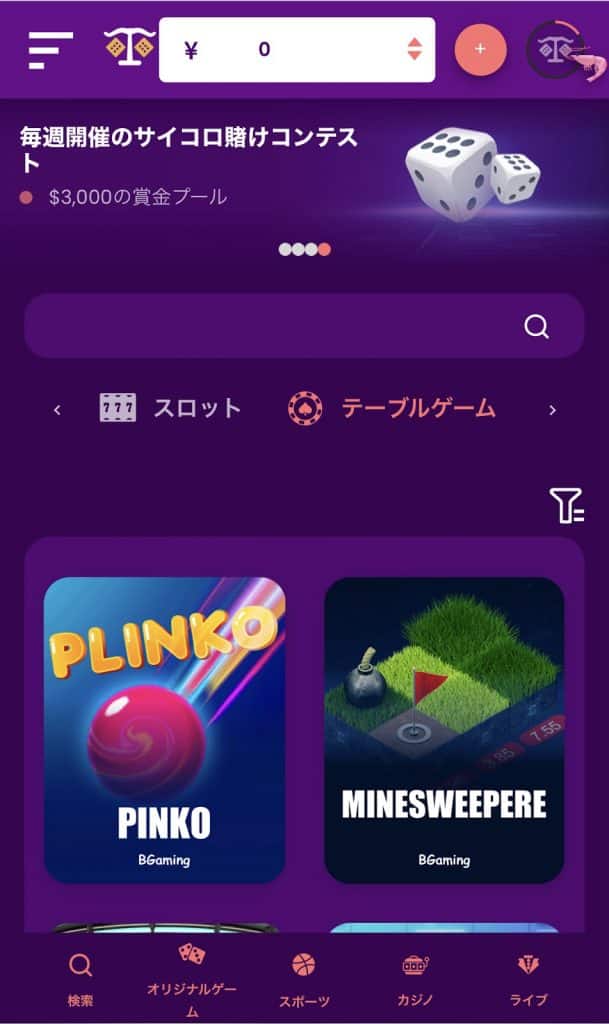 オリジナルゲーム「サイコロ」での7日間累積の賭け金総額より賞金が出ます。賞金総額は最大で3,000ドルになります。
