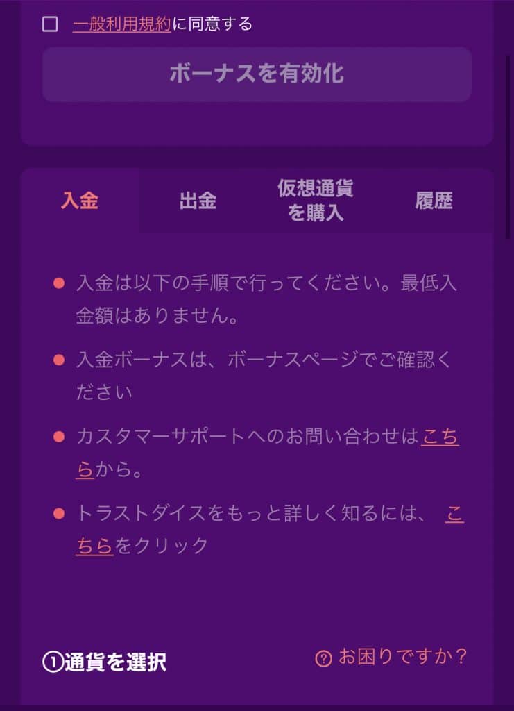 さらにトラストダイス内で仮想通貨を購入することもできます。そのため、仮想通貨を持っていない人でも手軽に利用できます。