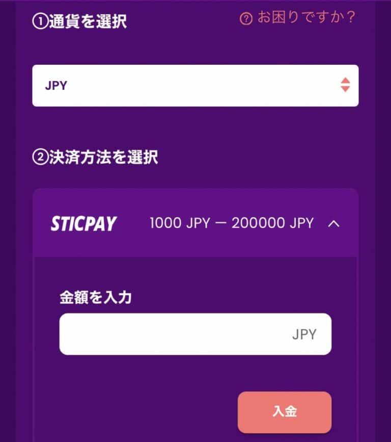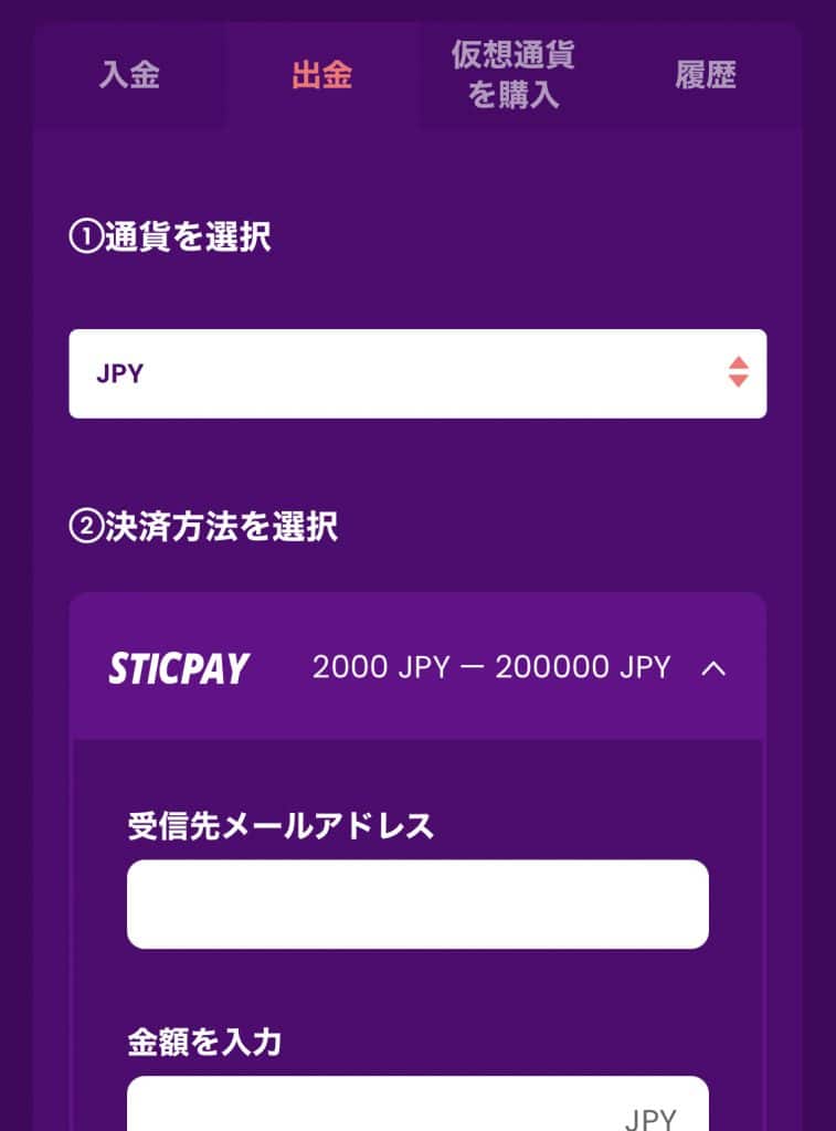 | 入金方法 | STICPAY/仮想通貨 | |