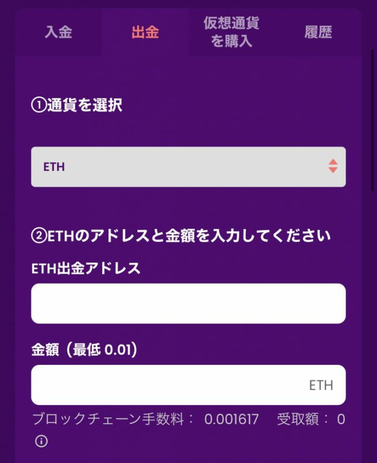 ※ イーサリアムでの出金の場合
